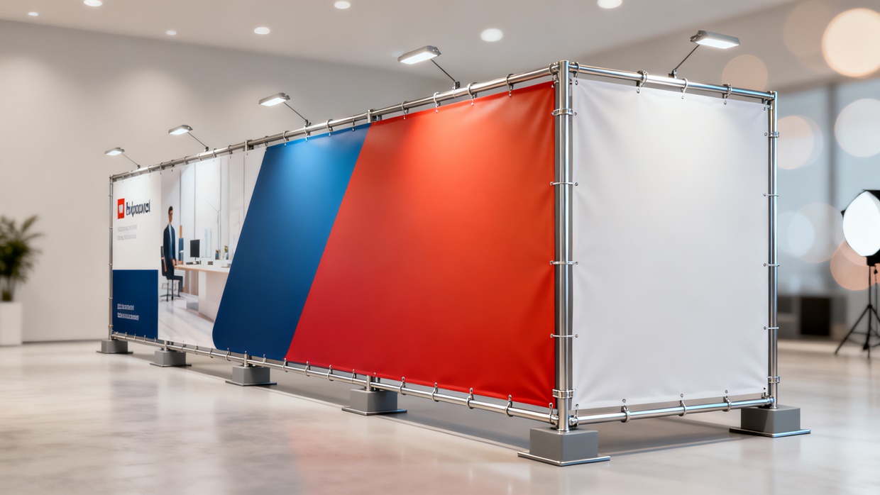 Mamparas con alma de acero recubiertas con poliuretano ancladas a estructuras con gráficos y diseños impresos en vinil adherible alta durabilidad en inyección de tinta alta resolución o lona impresa.